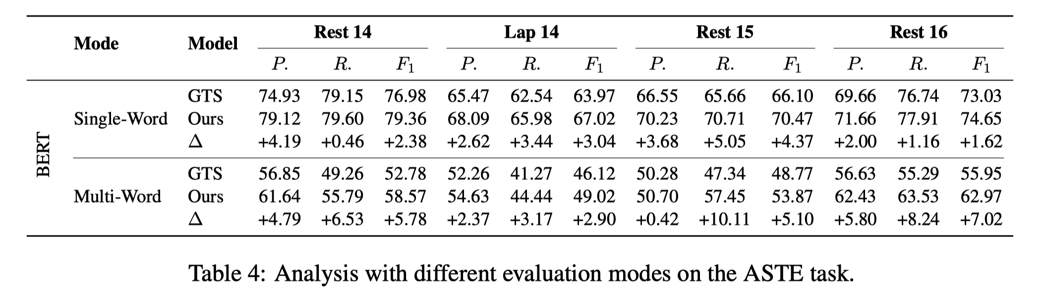 - 论证: 此前的一些模型无法识别 span 之前的联系 (在 a/o是包含多个token 也即为span 的时候), 这里用 span 级别的联系来计算两者的交互, 从而「确保了情感极性的一致性」.