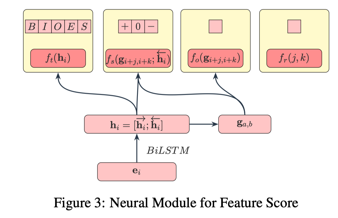 - fs 的输出为情感极性, 利用了 1) 当前词的隐状态和 2) jk所定义的一个span的表示; 也即计算了 opinion 的第一个token和aspect span 之间的相关性;